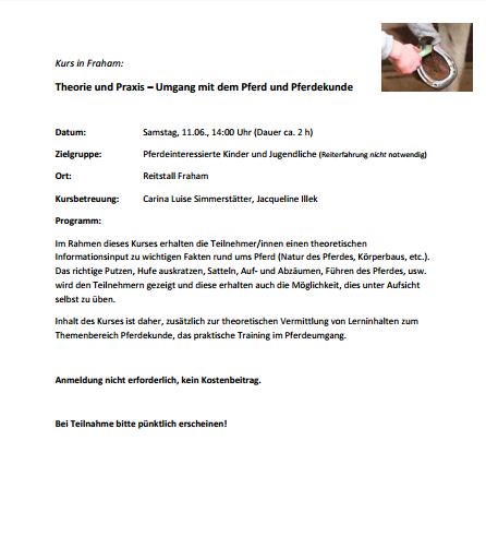 11. Juni 2016 - Theorie und Praxis – Umgang mit dem Pferd und Pferdekunde